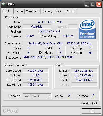 Результат разгона Intel Pentium Dual-Core (Wolfdale-2M)