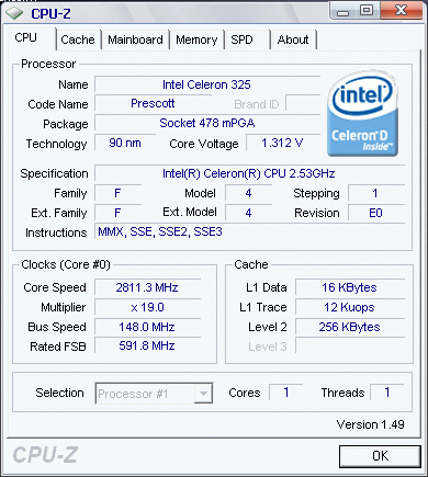| Процессор (ядро) | Intel Celeron D (Prescott-256) |