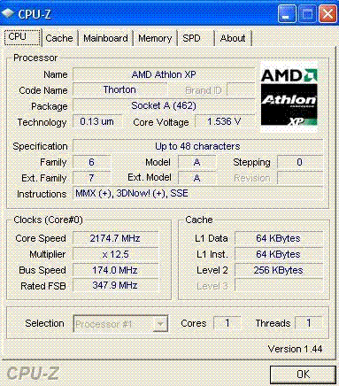 Результат разгона AMD Athlon XP (Thorton)