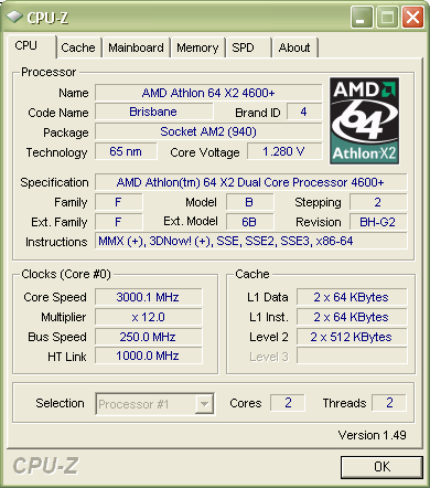 Результат разгона AMD Athlon 64 X2 (Brisbane)