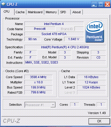 | Процессор (ядро) | Intel Pentium 4 (Prescott) |