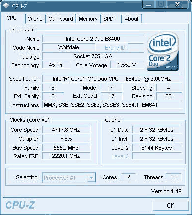Результат разгона Intel Core 2 Duo (Wolfdale)