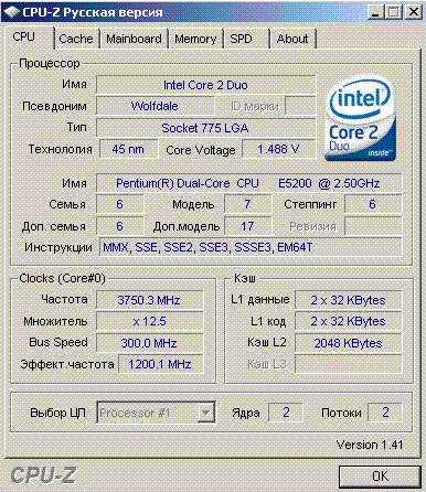 Результат разгона Intel Pentium Dual-Core (Wolfdale-2M)