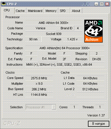 | Процессор (ядро) | AMD Athlon 64 (Venice) |