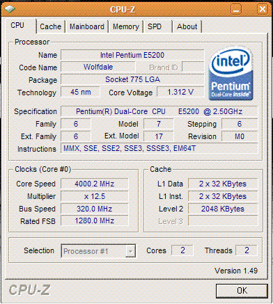 Результат разгона Intel Pentium Dual-Core (Wolfdale-2M)