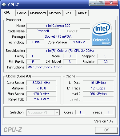 | Процессор (ядро) | Intel Celeron D (Prescott-256) |