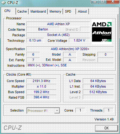 | Процессор (ядро) | AMD Athlon XP (Barton) |
