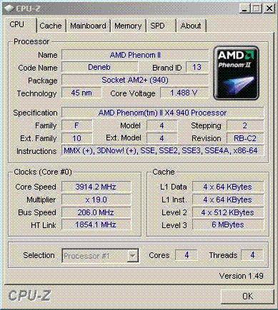 | Процессор (ядро) | AMD Phenom II X4 (Deneb) |