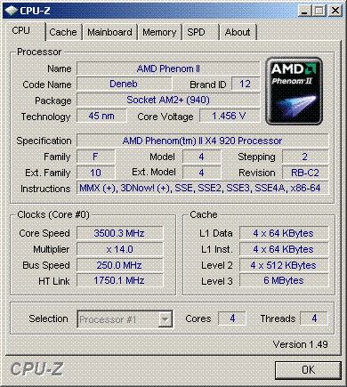 | Процессор (ядро) | AMD Phenom II X4 (Deneb) |