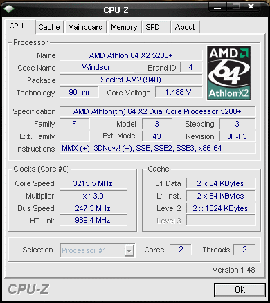 | Процессор (ядро) | AMD Athlon 64 X2 (Windsor) |