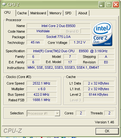 | Процессор (ядро) | Intel Core 2 Duo (Wolfdale) |