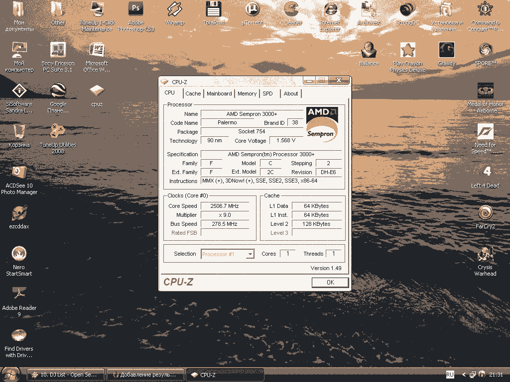 | Процессор (ядро) | AMD Sempron (Palermo) |