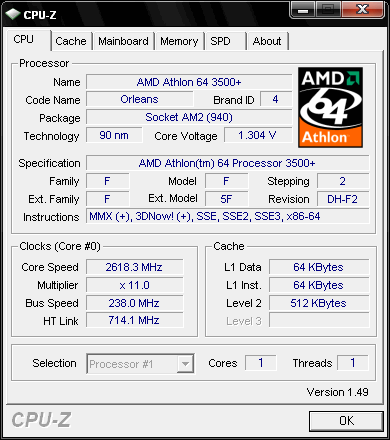 Результат разгона AMD Athlon 64 (Orleans)