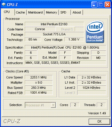 Результат разгона Intel Pentium Dual-Core (Conroe-1M)