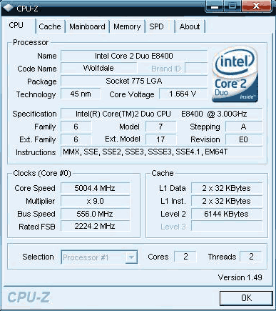 Результат разгона Intel Core 2 Duo (Wolfdale)