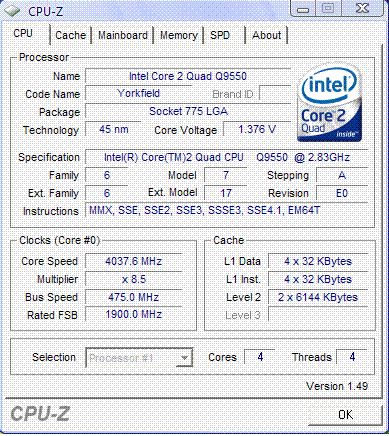 Результат разгона Intel Core 2 Quad (Yorkfield)