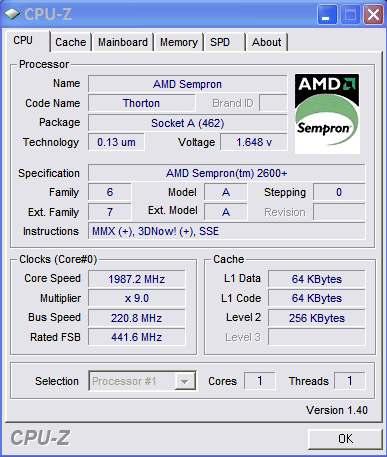 | Процессор (ядро) | AMD Sempron (Thoroughbred) |