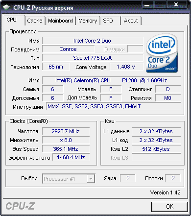 Результат разгона Intel Celeron (Conroe-512)