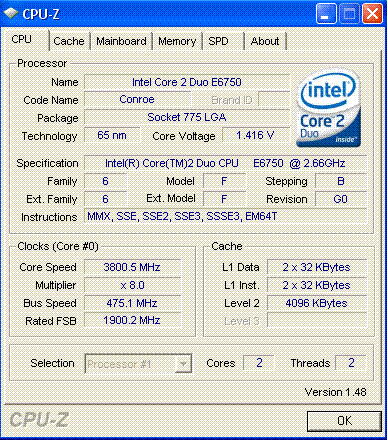 Результат разгона Intel Core 2 Duo (Conroe)