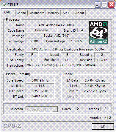 Результат разгона AMD Athlon 64 X2 (Brisbane)