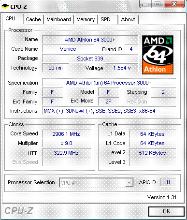 Результат разгона AMD Athlon 64 (Venice)
