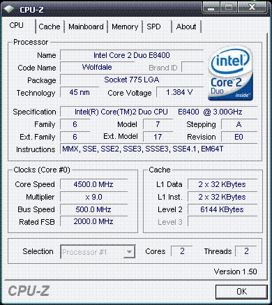 Результат разгона Intel Core 2 Duo (Wolfdale)