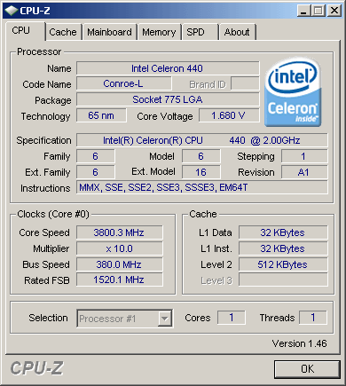 | Процессор (ядро) | Intel Celeron (Conroe-L) |