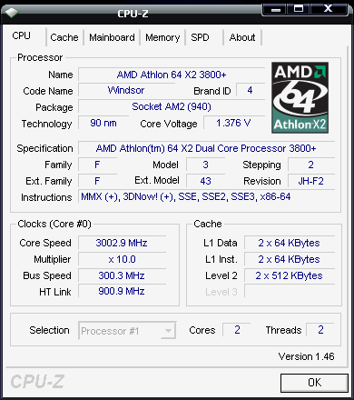 | Процессор (ядро) | AMD Athlon 64 X2 (Windsor) |