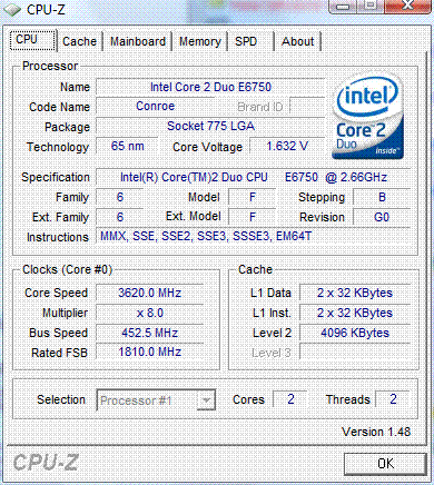 | Процессор (ядро) | Intel Core 2 Duo (Conroe) |