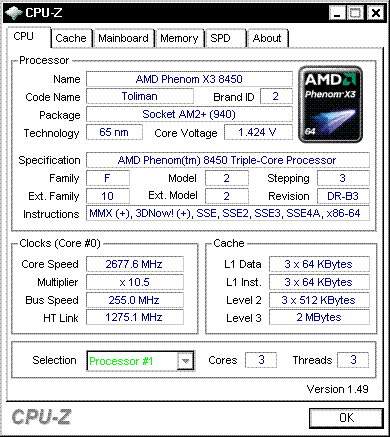 | Процессор (ядро) | AMD Phenom X3 (Toliman) |