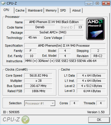 Результат разгона AMD Phenom II X4 (Deneb)