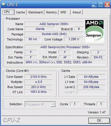 | Процессор (ядро) | AMD Sempron (Manila) |