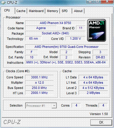 | Процессор (ядро) | AMD Phenom X4 (Agena) |