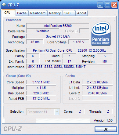 Результат разгона Intel Pentium Dual-Core (Wolfdale-2M)