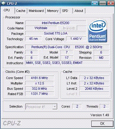 Результат разгона Intel Pentium Dual-Core (Wolfdale-2M)