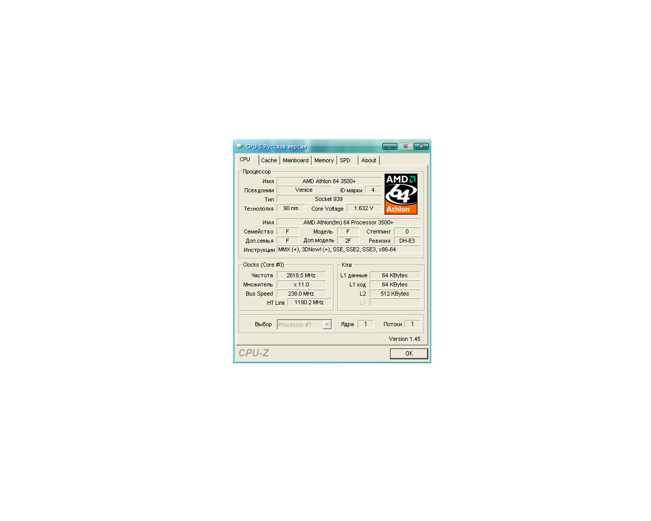 | Процессор (ядро) | AMD Athlon 64 (Venice) |