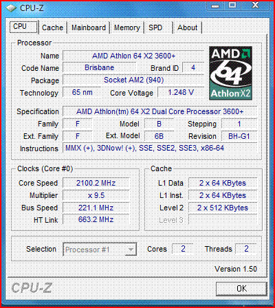 Результат разгона AMD Athlon 64 X2 (Brisbane)