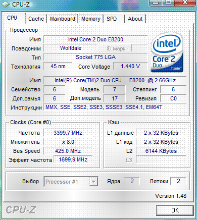 Результат разгона Intel Core 2 Duo (Wolfdale)