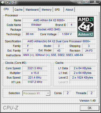 Результат разгона AMD Athlon 64 X2 (Windsor)