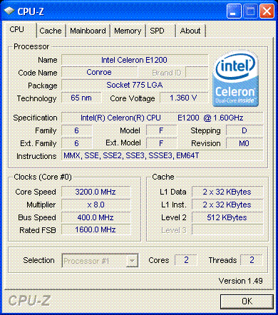 | Процессор (ядро) | Intel Celeron (Conroe-512) |