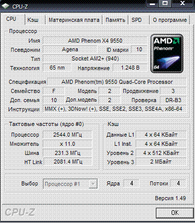 | Процессор (ядро) | AMD Phenom X4 (Agena) |