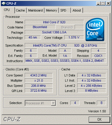 | Разгон, максимально стабильная частота (FSB x Ratio) | 4347 (207 x 21.0) |