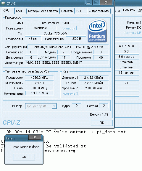 Результат разгона Intel Pentium Dual-Core (Wolfdale-2M)