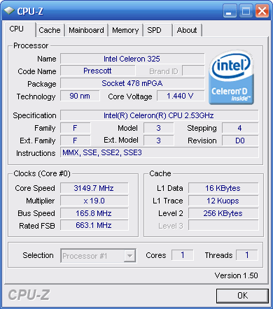 Результат разгона Intel Celeron D (Prescott-256)