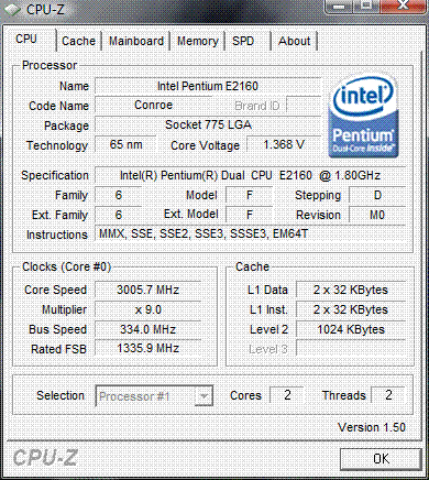 Результат разгона Intel Pentium Dual-Core (Conroe-1M)