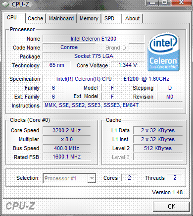 | Процессор (ядро) | Intel Celeron (Conroe-512) |