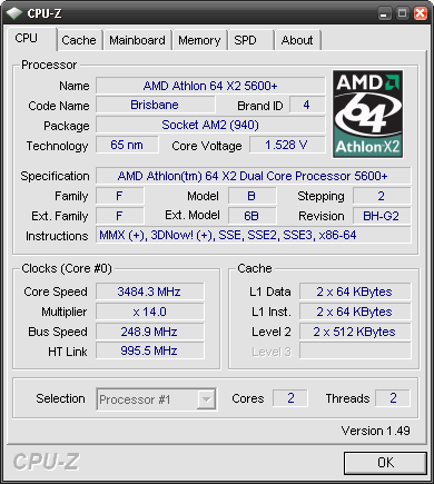 Результат разгона AMD Athlon 64 X2 (Brisbane)