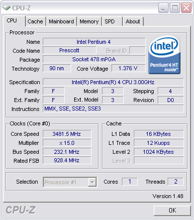 | Процессор (ядро) | Intel Pentium 4 (Prescott) |