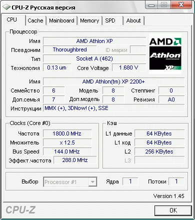 | Процессор (ядро) | AMD Athlon XP (Thoroughbred) |