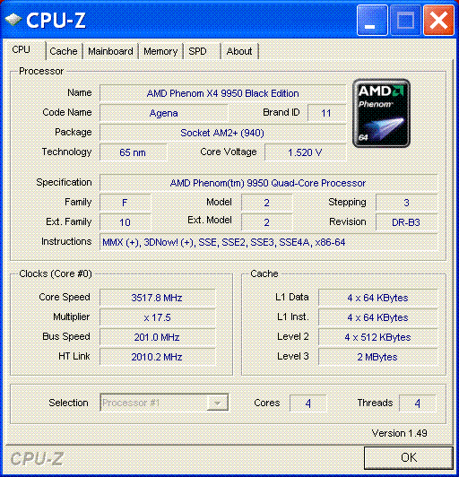 | Процессор (ядро) | AMD Phenom X4 (Agena) |